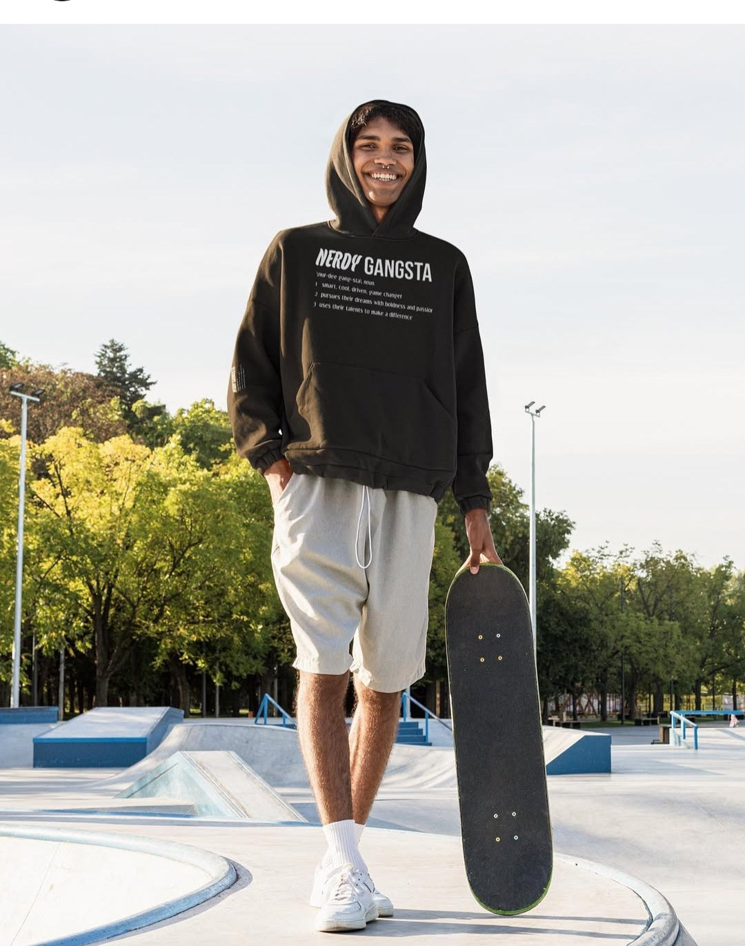 Stay warm and cozy in this stylish Nerdy Gangsta Hoodie. This hoodie is perfect for those who want to make a statement. With a classic fit, spacious pockets, and a color-matched drawcord, this hoodie is perfect for everyday wear or special occasions celebrating knowledge, perseverance, and excellence.