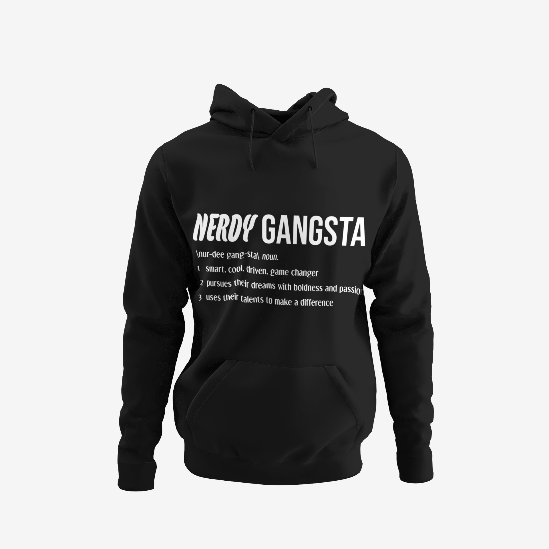 Stay warm and cozy in this stylish Nerdy Gangsta Definition Hoodie. This hoodie is perfect for those who want to make a statement. With a classic fit, spacious pockets, and a color-matched drawcord, this hoodie is perfect for everyday wear or special occasions.